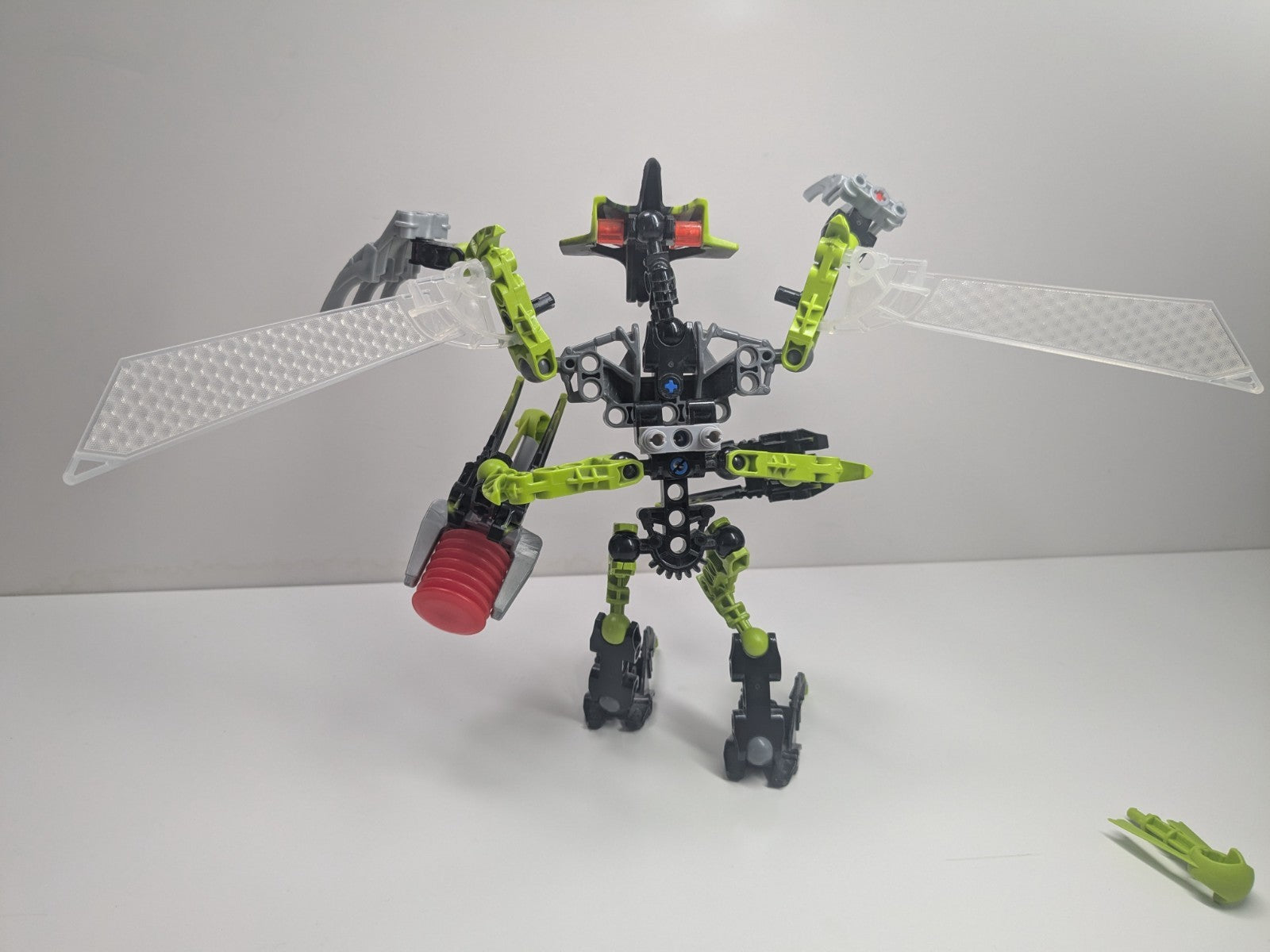 Description: Savage warrior of the Makuta! Makuta Gorast is known throughout the universe for her raw power and violent rage. With four claw arms, Mask of Disruption and Nynrah ghost blaster, even other Makuta have reason to fear her might.