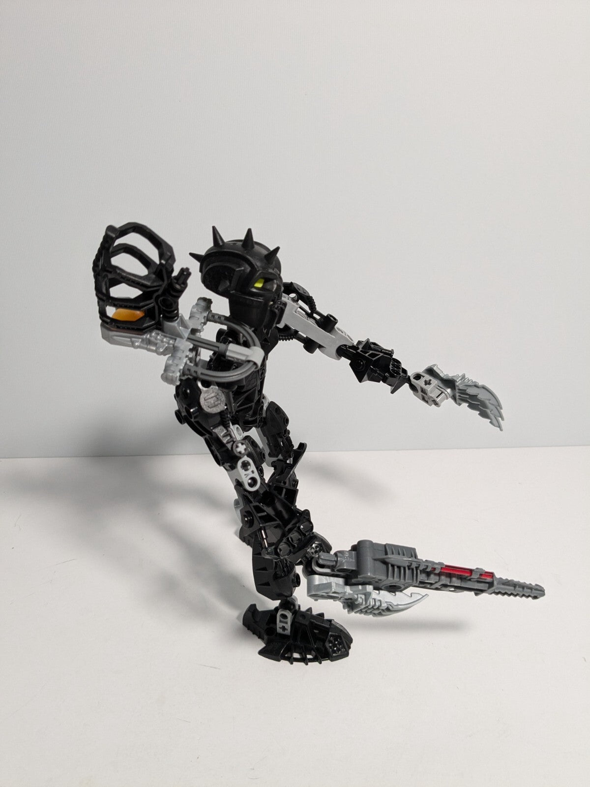 Description: Toa Inika Nuparu soars through the air with his Kanohi Kadin, the Mask of Flight. His laser drill and zamor sphere launcher makes him a formidable fighter, on the ground or in the sky. Includes a zamor sphere launcher and one zamor sphere!
