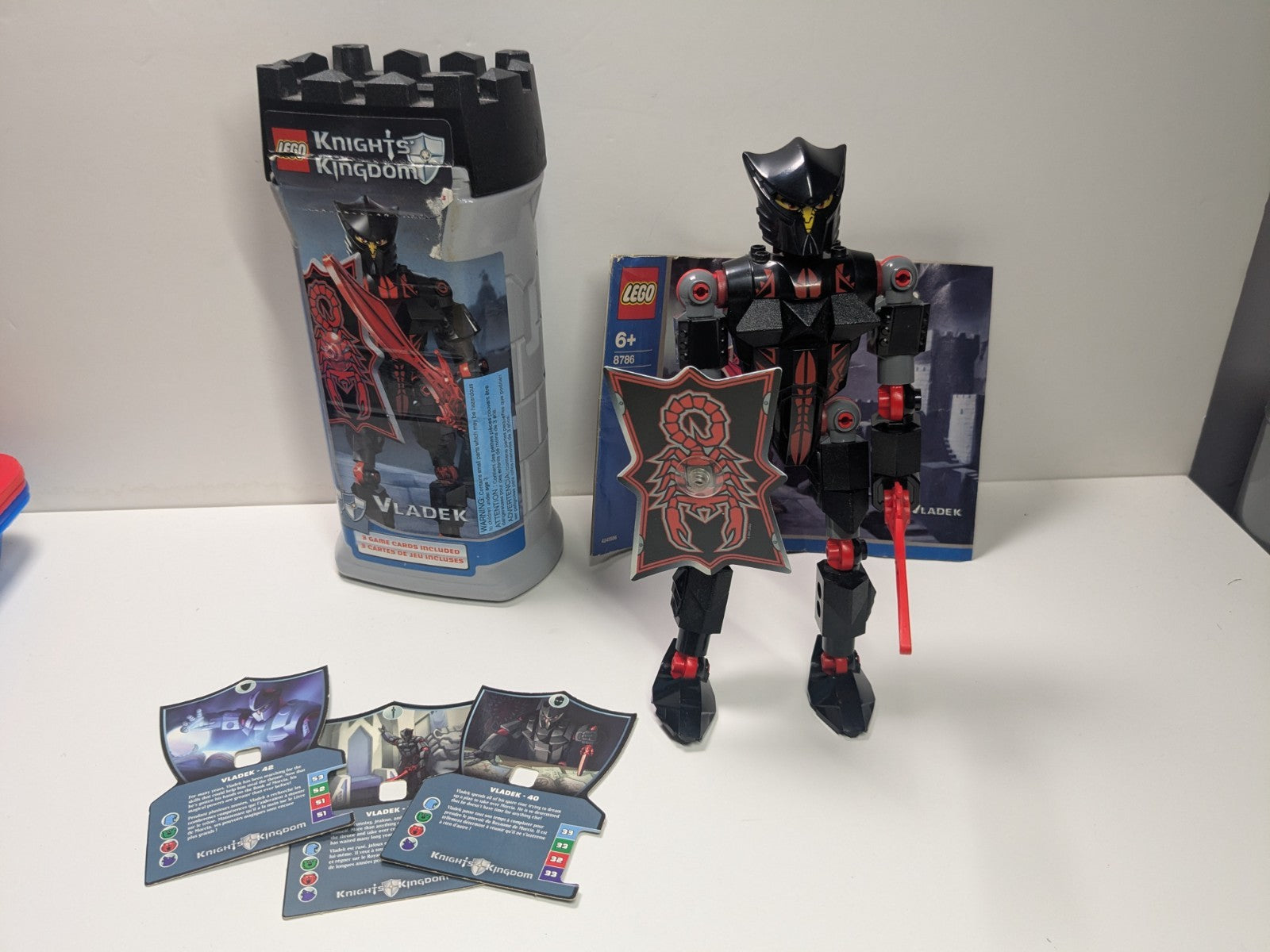 Description: Rare US version Knights Kingdom set from 2004 with Vladek figure and 3 cards